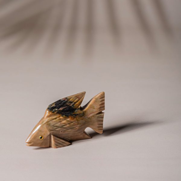 Add a refined artistic touch to your space with this handcrafted semi precious stone fish sculpture.