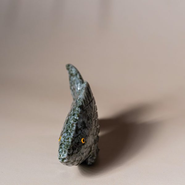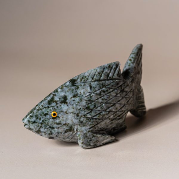 Add a refined artistic touch to your space with this handcrafted semi precious stone fish sculpture.
