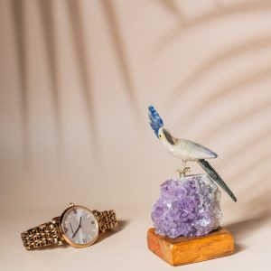 Add a refined artistic touch to your space with this handcrafted semi precious stone art sculpture.